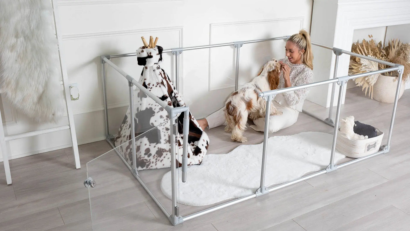We understand the balance between loving your pets and loving your home. That’s why we created the revolutionary clear pet pen, trusted by tens of thousands of pet owners. The innovative design allows you to create stunning functional spaces where your pets can thrive in the heart of your home, so they always feel connected and loved as a family member.